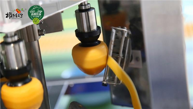 在富平永辉的柿子产业园内,一排排橙红饱满的富平尖柿正在经历一趟奇妙的高科技旅程,光电智能分选、鲜果全自动削皮、五段式智能烘干,通过将现代技术与传统工艺相结合,最快仅需20天,粉厚霜白、甜嫩软糯的富平柿饼即可新鲜出炉,口感与传统手工制作几乎无差,且生产过程全程清洁无尘化,生产效率大大提高。