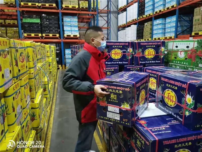 王明飞介绍说,每个产品都有自己的鲜度密码,为了让产品最大化保鲜,以最好的状态进入卖场,永辉生鲜仓储园区实行严格的仓管制度,针对不同的产品特性,建立了不同的保鲜小库房。“以水果为例,苹果、火龙果、榴莲、进口果、散装软果都不允许混放,一是防止催熟,二是避免串味。同一产品熟度不同,也要分开储存,或者及时跟门店沟通调整发配。”