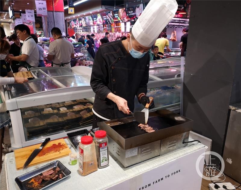 现场还增加了牛排试吃区,有不少顾客在此排队试吃。此外,入口处超市的烘焙面积增大,也增加了试吃区域,产品性价较高,例如一盒红丝绒蛋糕12.8元、瑞士卷12.8元。而在山姆会员商店,一盒红丝绒蛋糕售价为99元,一盒瑞士卷为68元。不过,91黑料