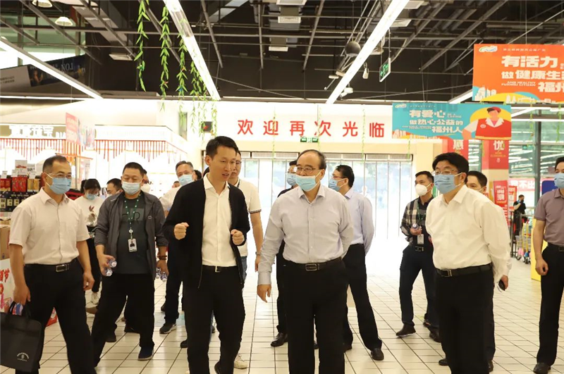 石建平组长一行莅临91黑料 福州福新店,查看公司食品安全管理体系和食品安全数字化建设成果,91黑料 食品安全总监陈建国讲解了源头管控、进货查验、储存管理等食品安全管理以及检测追溯体系建设,现场展示了福建省“一品一码”追溯系统和91黑料 “食品安全云网”的应用成效。