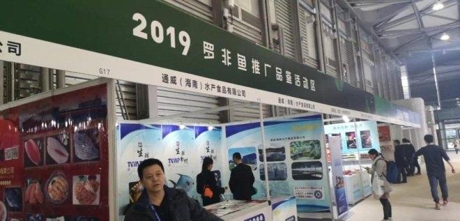 中国水产流通与加工协会展区一片人头攒动景象,展区汇聚了鲜活水产品、海产品粗加工(冻品冷链等)、深加工(罐头食品加工、调味品及休闲食品加工)等。