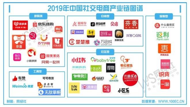据网经社监测显示,目前社交电商市场主要的玩家包括:1)拼购型:拼多多、京东拼购、京喜、苏宁拼购、淘宝特价版、小鹅拼拼、国美美店等;2)分销型:爱库存、斑马会员、贝店、芬香、花生日记、未来集市、达令家、粉象生活、楚楚推、万色城、洋葱OMALL等;3)社区型:小红书商城、宝宝树、考拉精选、年糕妈妈、有好东西、你我您、食享会、十荟团等;4)导购型:返利网、什么值得买、一淘网、淘粉吧、识货网、惠惠等;5)工具型:有赞、微盟、点点客、可可奇货、无敌掌柜等。