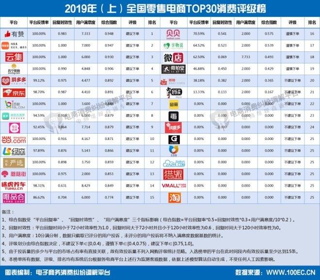 30家零售电商上消费评级榜 各类电商表现“参次不齐”