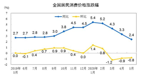 国家统计局:5月份CPI同比上涨2.4%