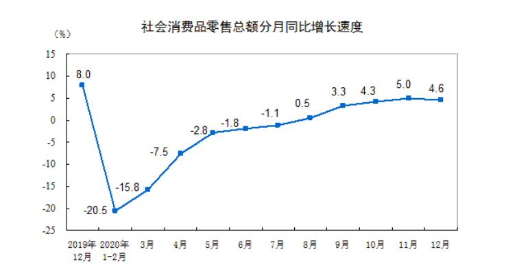 12月份,社会消费品零售总额40566亿元,同比增长4.6%,增速比上月回落0.4个百分点。 ...