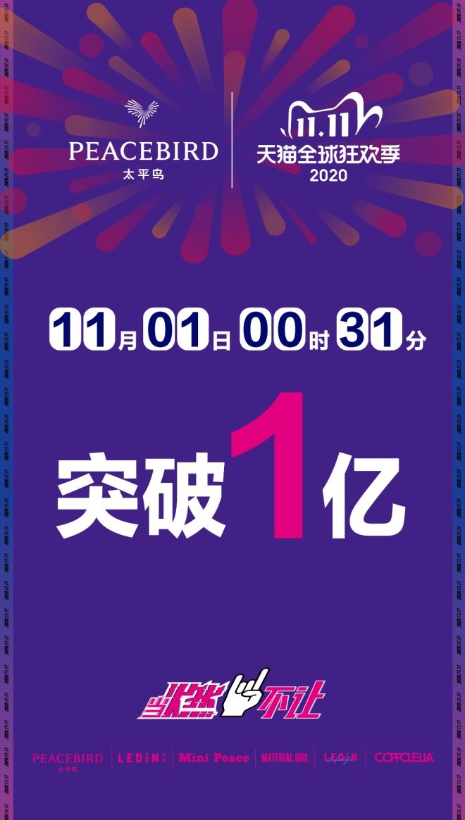 11月01日0点,太平鸟双11第一阶段尾款正式爆发。 ...