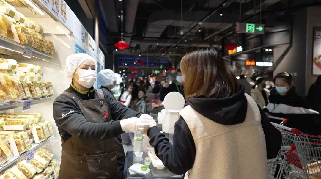 试吃员总会在顾客靠近时主动递上试吃品,纸托里的现烤面包切得方正整齐,一旁的食品级小夹子轻巧地夹起一块。顾客王女士说:“以前整盒自取总担心卫生问题,现在像在朋友家做客一样安心。”这样的场景,正是永辉试吃体验的缩影。试吃员上岗前必须通过商品知识考核,从一块试吃品的尺寸、夹取工具的设计,到员工递出时的微笑弧度,每一个细节都在无声地传递着“被尊重”的仪式感。