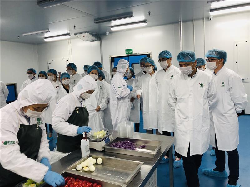 座谈期间,机构代表团聆听了关于彩食鲜的介绍,了解了彩食鲜的生意模式、服务对象和工厂概况,并当场品尝了江苏彩食鲜工厂的爆款产品---Bon沙拉和智利原产三文鱼,对产品的新鲜度和口感给予了高度的评价。为进一步探究这些美味食材的来源,机构代表团在彩食鲜员工的带领下,移步实验室和车间区域,进行实地参观。
