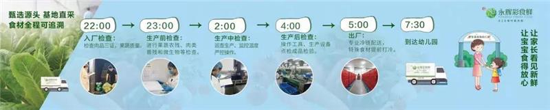 为了让家长看见新鲜、让宝宝食得放心,彩食鲜在食材供应的每一道环节都设置了严格的食品安全和质量控制程序,建立起了完整的每日检测体系,做到“食材全程可溯源”,确保出厂的每一份食材都安全可靠。