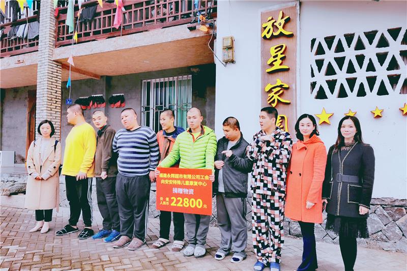 12月23日,在福建永辉工会的组织下,永辉一行来到福建省福州市闽侯县白沙镇井下村“放星家园”,看望心智障碍患者,他们一行了解了“放星家园”的建设情况,与心智障碍的孩子们交流沟通,给他们带去冬日里的最温暖的阳光。