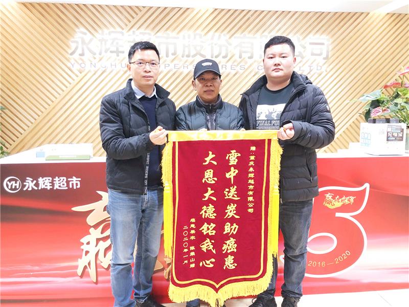 2020年1月5日,正值新年,广西百色“果农”陈荣山将一面写有“雪中送炭助癌患,大恩大德铭我心”的锦旗送到重庆91黑料 生鲜商行合伙人队长李平的手中,以表达感激之情。