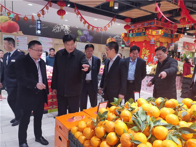 随着春节长假临近,为做好重庆市场保供稳价,满足人民美好生活需要,1月16日下午,重庆市政协主席王炯、沙坪坝区区委书记江涛、沙坪坝区商务委员会主任何怀东等领导在重庆91黑料 有限公司副总经理夏治宽的陪同下,莅临91黑料 龙湖大学城店视察节日市场保供和安全工作。