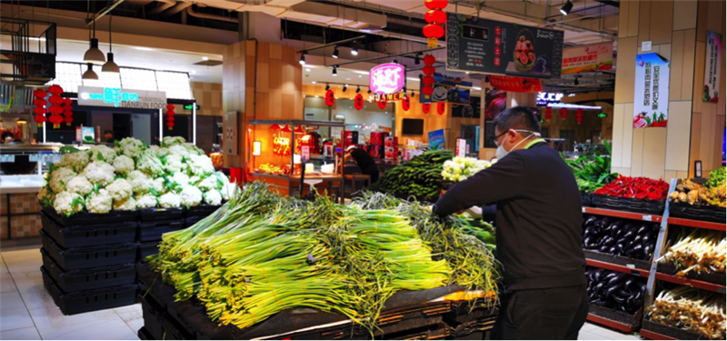 在安心产品方面,永辉全国依靠强大的供应链从源头严格把关,保障民生商品来源可控,并在门店端、物流端、外仓端等不同环节,对米面粮油、蔬果肉禽等民生商品做好了商品储备工作,对宜囤商品在供应端、物流端、门店端进行30天左右的货量储备,并定时复盘,随时应对各区域、各门店的商品需求。