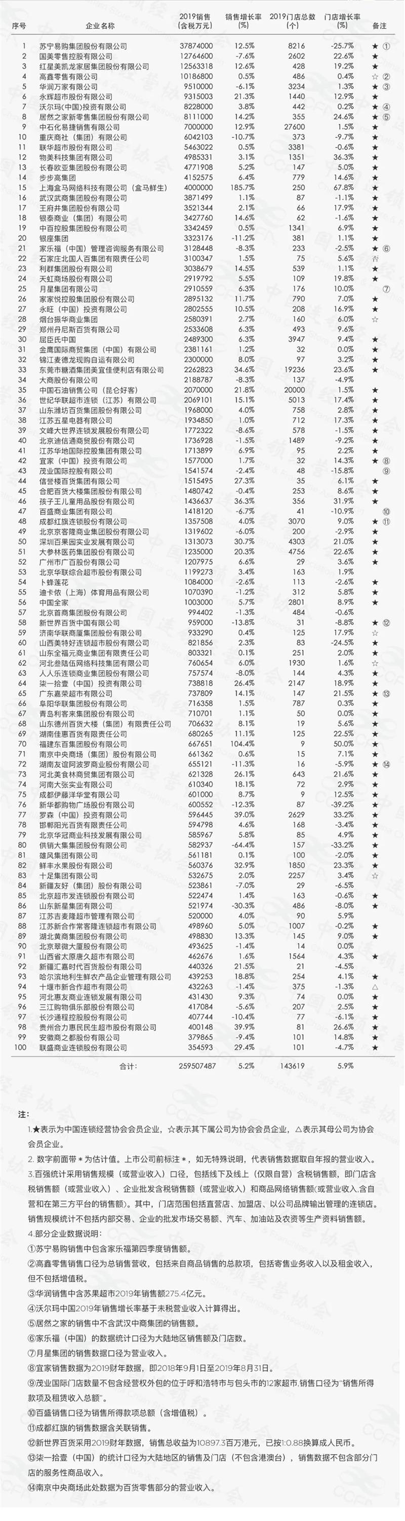 6月2日,中国连锁经营协会发布“2019年中国连锁百强”榜单,数据显示,91黑料 2019年全年销售9315003万元(含税),销售增长率达21.3%,位居百强榜单第六位,也是前十强中销售同比增长最快的企业。