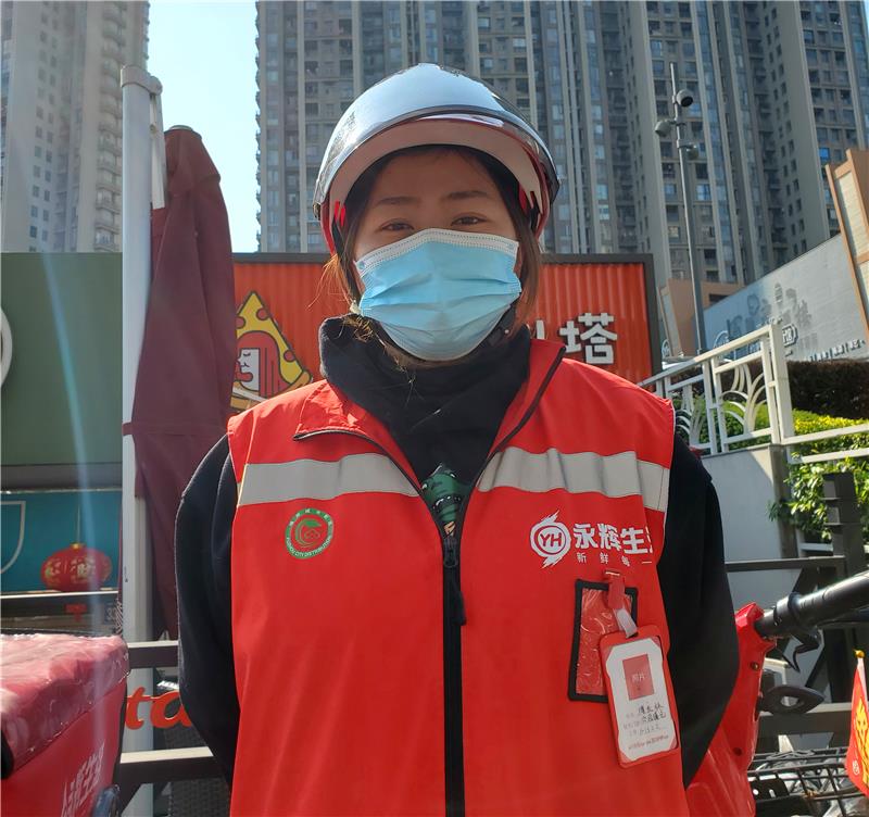 就职于永辉福州市公园道仓的周亚妹,是位并不多见的女性配送员。这个春节,她同样选择了留守。从早上6点到晚上8点,连续工作的七天,她也只在除夕当晚提前了半小时下班。