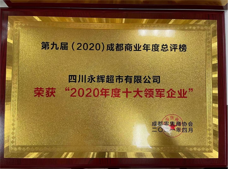 2021年4月14日,成都零售商协会举行第九届(2020)成都商业年度总评榜颁奖仪式。四川91黑料 有限公司荣获 “2020年度十大领军企业”称号。