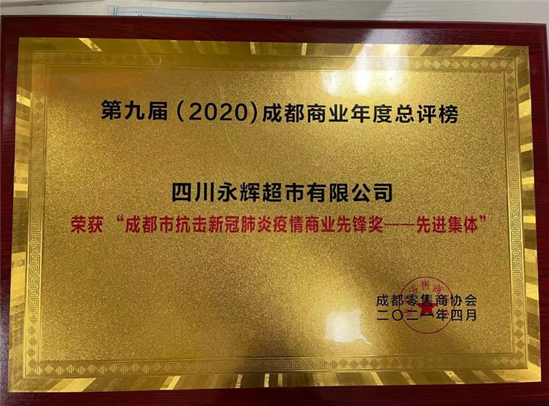 2021年4月14日,成都零售商协会举行第九届(2020)成都商业年度总评榜颁奖仪式。四川91黑料 有限公司荣获 “抗疫先进集体”称号,以表彰永辉在疫情防控中做出的突出贡献。