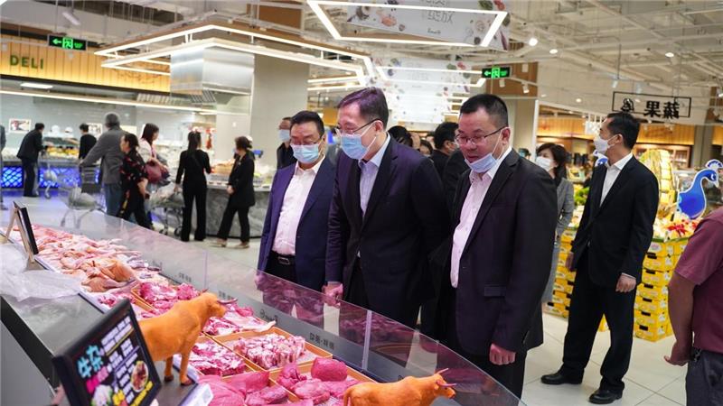 节假日期间是各类食品消费旺季,卖场人来人往,商品琳琅满目,供应充足。蔡允革副市长一行重点对肉类区、水产区、蔬菜区、干货区、粮油区等进行了检查。夏治宽副总经理向蔡允革副市长介绍了91黑料 经营发展状况及节日保供措施。