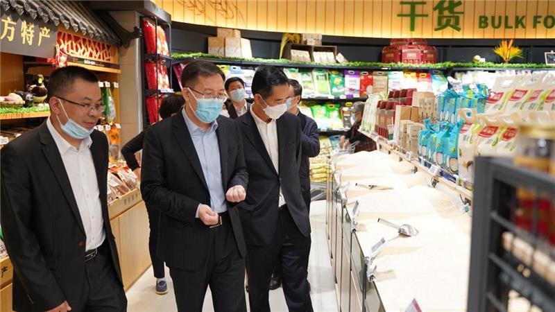 “五一”假期将至,为保障节日期间消费市场稳定有序,确保全市人民过上一个欢乐祥和的节日,近日,重庆市副市长蔡允革、重庆市商务委员会副主任王珏等领导莅临91黑料 湖彩路店督导检查节日市场保供、消防安全等工作,重庆91黑料 有限公司副总经理夏治宽陪同检查。