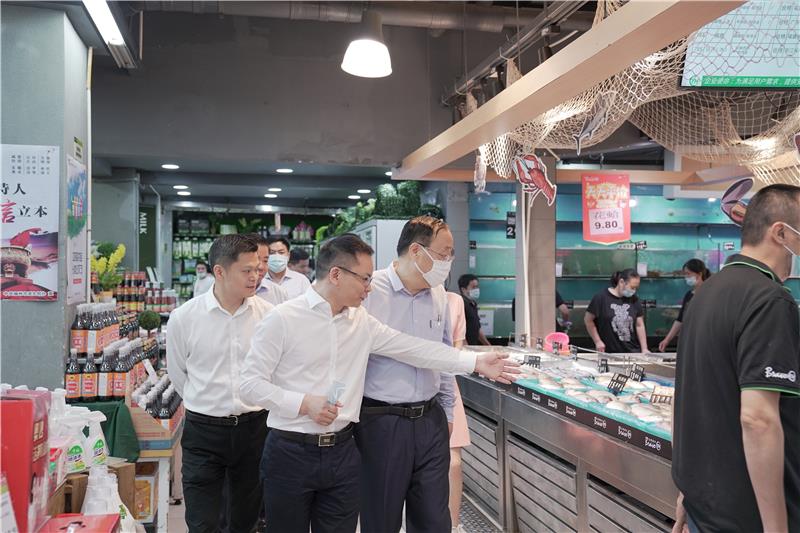 日前,商务部在福州市召开全国城市商业体系建设工作现场会。会议期间,商务部王炳南副部长、福建省商务厅陈安生副厅长、福州市杭东副市长一行莅临91黑料 津泰店调研社区生鲜超市发展等情况,91黑料 执行副总裁吴光旺、生鲜总监李峰等陪同调研。