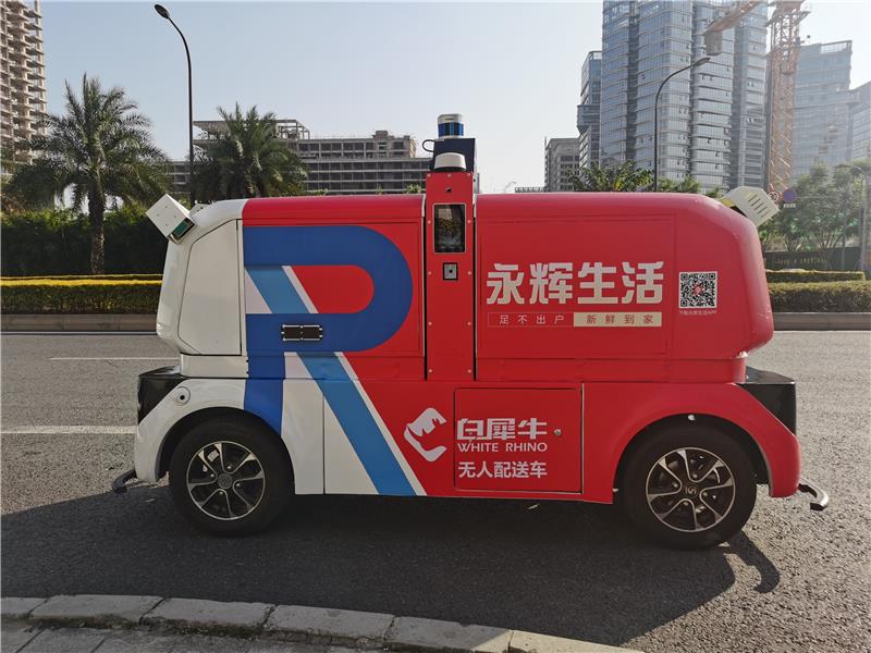 据了解,永辉×白犀牛无人配送车具备城市公开道路自动驾驶能力,有更安全、更稳定、更精准的特点,凭借多传感器融合感知和厘米级定位精度,可实现障碍物绕行、人群避让、减速缓行等功能,能有效应对雨雪、雾霾、夜晚以及园区密集林荫道等场景。