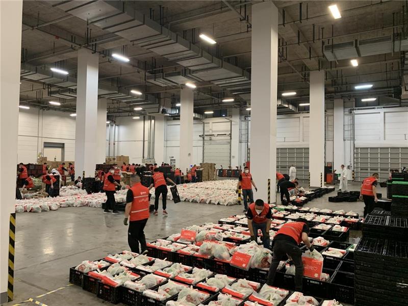 本次增调人员多为熟练的拣货打包工作人员,将在宝山月浦仓建立保供物资中央工厂,生产套餐并组织车辆配合政府进行抗疫保供工作。