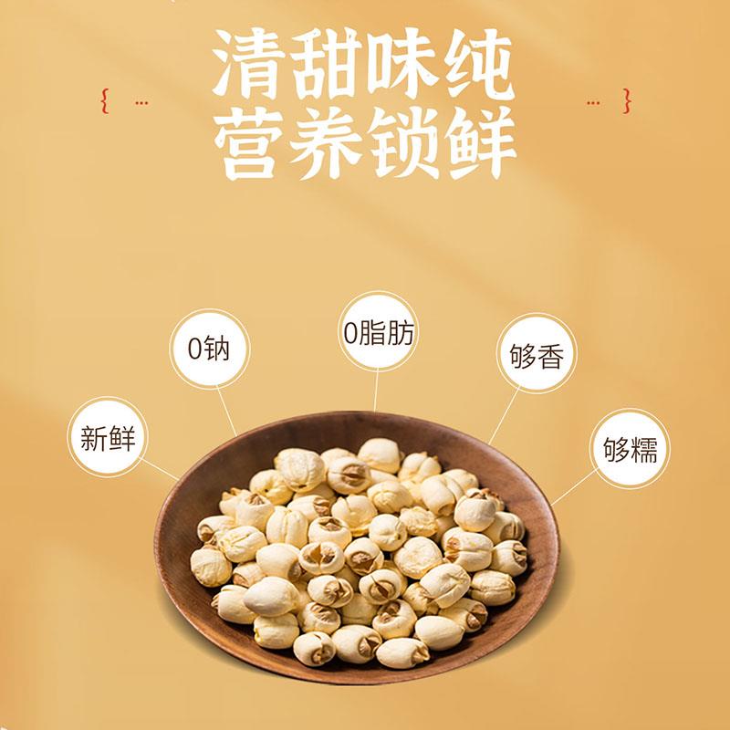 为了保证莲子汁的纯正本味和营养价值,该产品将藕粉、瓜子仁、核桃、冰糖等优选新鲜原料严格按照科学配比融合,通过古法调制,真正实现了0香精、0色素、0防腐剂、0脂肪、0增稠剂的五“0”主义,通过在产品上做“减法”,为消费者提供健康本味,成为低糖低卡人群的优选饮品。