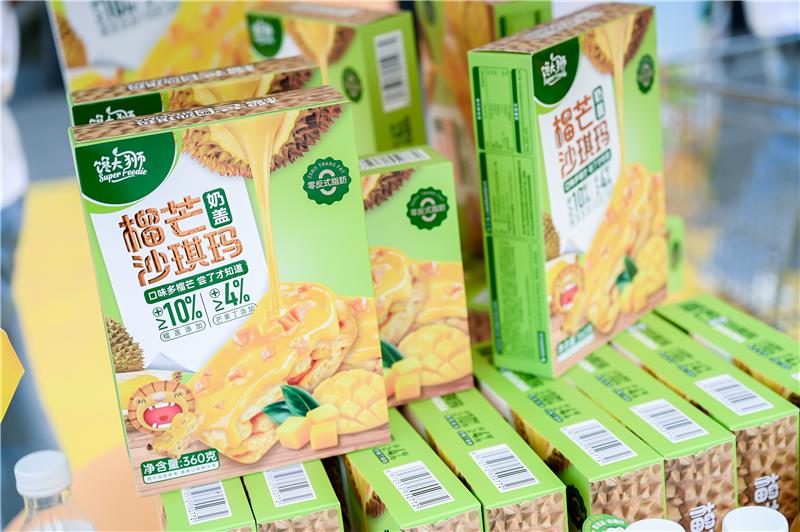 一方面,在休闲零食的口味上,馋大狮希望图通过差异化思维打造出更加新锐好吃的口感,并将产品创意做到极致。不论是融合了山茶花乌龙茶底与滇桂沃柑的山茶柑柑好,还是通过独家工艺将榴莲及芒果风味进行融合的榴芒奶盖沙琪玛,都体现了馋大狮对于年轻Z世代喜欢叠加口感需求的洞察和思考,以多元化的风味尝试为消费者带来新鲜、立体的口感体验。