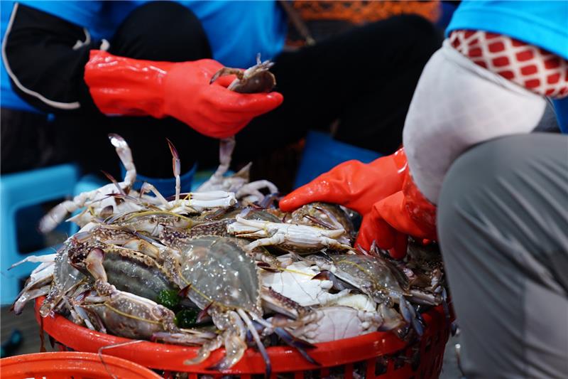 一般当天下午捕捞的梭子蟹,在第二天凌晨即可在周边省区的永辉门店内上架销售。