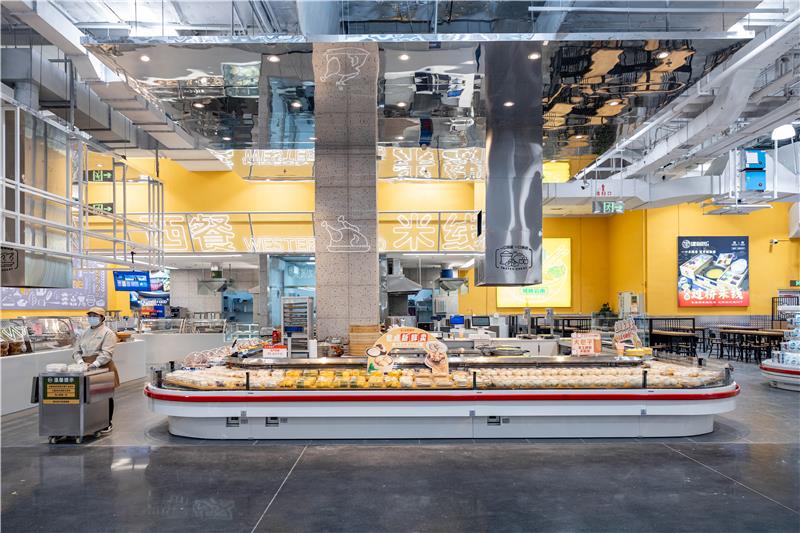 在云南旗舰店中,永辉秉持“更高标准、更人性化、更具体验感“的宗旨,对门店场景进行重新设计,通过增加“烟火气“的烘焙区、加工食品区做到”开门见鲜“,充分调动消费者“视觉、嗅觉、味觉”的感官体验。