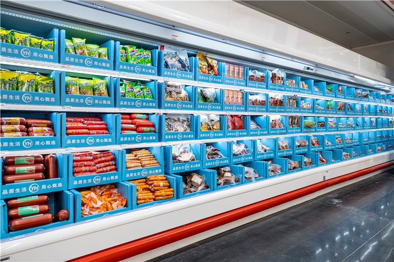 云南旗舰店中的生鲜、肉禽类产品实现全标品、量贩式,且超90%由永辉云南产地仓的加工仓自主完成,多重保障严控食品安全。店中设有独立的肉品加工间,可以实现肉禽类产品冷藏、冷冻双位一体,并能根据消费者需求实现现场切割;敞开式低温保鲜售卖区,不高于10度的恒定温度打造最优的蔬菜储存空间,时刻保证蔬菜的口感和新鲜度。