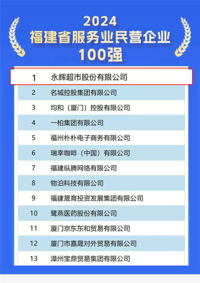 9月19日,福建省工商联发布2024福建民营企业100强、制造业100强、服务业100强、创新型100强、社会责任100佳等5个榜单。 ...