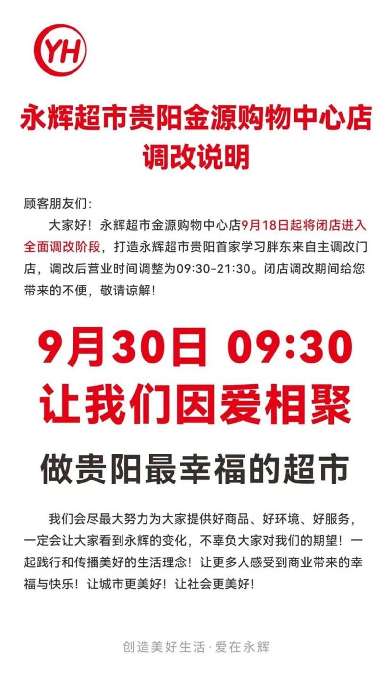 贵阳首家调改店开业倒计时,永辉学习胖东来自主调改全国铺开
