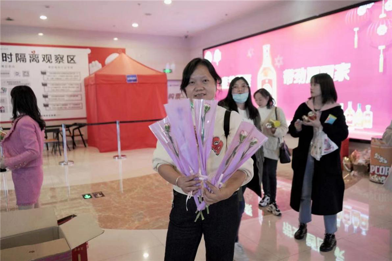 为让本次的“三八”女神节观影活动更加贴近女职工生活,享受节日的快乐,福建永辉工会女工主任陈丽女士,工会委员林星、陈满喜精心组织,特别挑选了描述母爱伟大的热门电影《你好,李焕英》,并为每一位职工准备了节日的鲜花、巧克力,观影小食等小礼品,让大家充分感受到企业、工会的关怀和温暖。陈丽介绍说:在这个特殊的节日举办活动,希望广大女职工的在繁忙的工作之余,能够尽情展示巾帼风采,丰富女性文化生活。