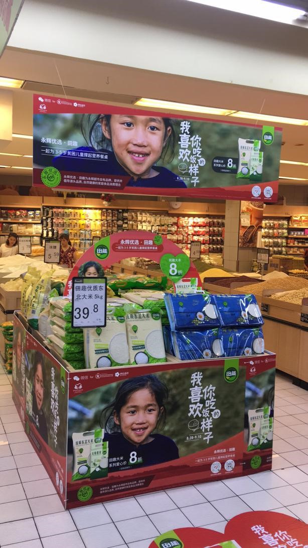 当下,公益活动已迈入2.0时代,扶贫精细化程度及品质要求也在不断上升,而公益参与方也更加注重公益内容和质量。借助这种多样化的公益形式,永辉优选将品质优秀的田趣大米作为核心合作商品。选择这款永辉自有品牌中最为畅销的大米,永辉优选的目的不仅想满足贫困儿童温饱的需求,更想让他们“吃好”,通过这场活动体验到更营养、美味的餐桌美食。
